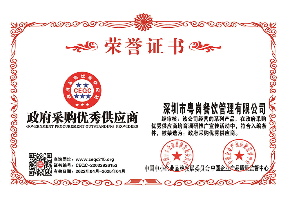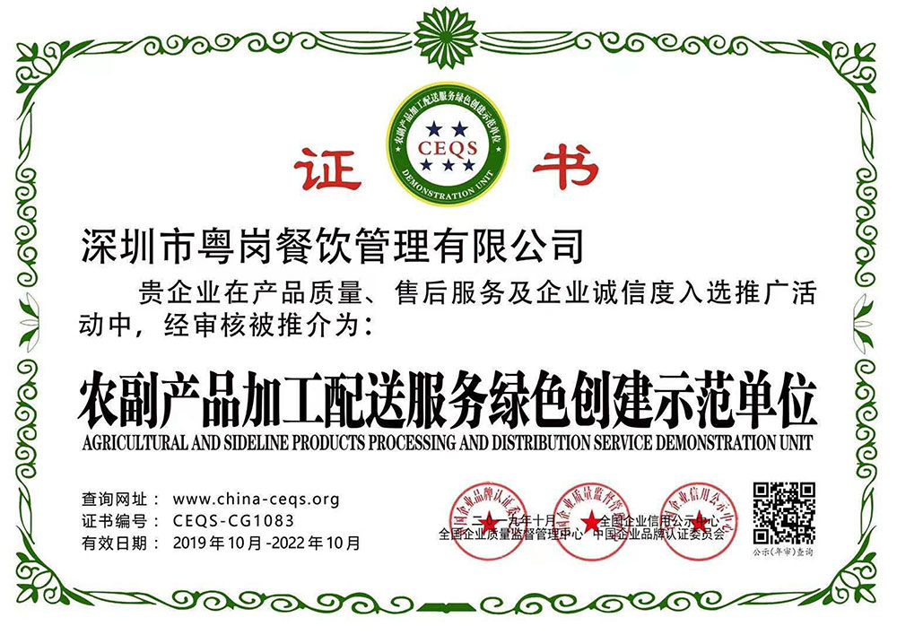 粵崗蔬菜配送榮譽墻
